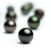 Thavnairian Black Pearls come from the warm waters of the Near East and are grown in a Black-Lipped oyster. They are the only pearl to achieve a black body color naturally and are typically very large. Thavnairian Black Pearls gain their name from their dark coloration. However, they have can have a wide range of overtones including black, gray, silver, green, blue and purple.Round